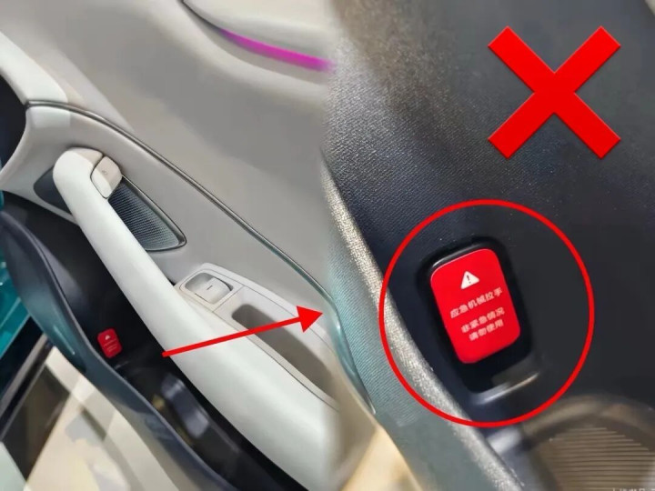 其次,关于碰撞后的安全措施,如同开头所说的,市面上的隐藏门把手品类、品牌很多,每个企业的安全逻辑也不同,对于安全层面可以从两个维度考虑,第一个车内人员,可以制定标准,使用电动开启车门的车内门把手设计,必须与紧急开门的机械开关进行一体化设计,目的是让车内人员在紧急情况下,在本能操作的基础上,直接拉开车门。第二个车外救援人员,最直接的方法就是门把手弹出,同样机械打开方式与门把手一体化设计,弹出的门把手直接拉拽就是机械打开方式。